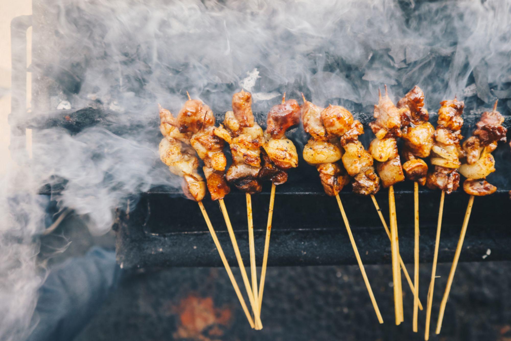 - Saté kent iedereen waarschijnlijk. Het populaire gerecht uit Indonesië en Maleisië wordt gegeten met witte rijst (vaak kleefrijst) en komkommer (al dan niet in het zuur). Vaak is de marinade of de saus die erbij wordt geserveerd afhankelijk van de vleessoort.