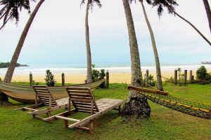 Dikwella in het zuiden van Sri Lanka is lokaal vanwege het lange zandstrand. Het water is hier rustig omdat voor de kust de kracht van de zee wordt gebroken door landtongen, rotsen, riffen en zandbanken.